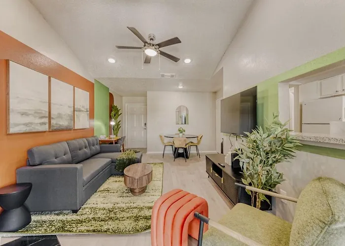 Para aumentar o seu conforto, este apartamento dispõe de cozinha totalmente equipada com máquina de lavar loiça. Os hóspedes também podem pegar um autocarro na estação de autocarros 4923 Convict Hill/Flaming Oak, situada a aproximadamente 5 minutos a pé de distância para explorar o resto de Austin.